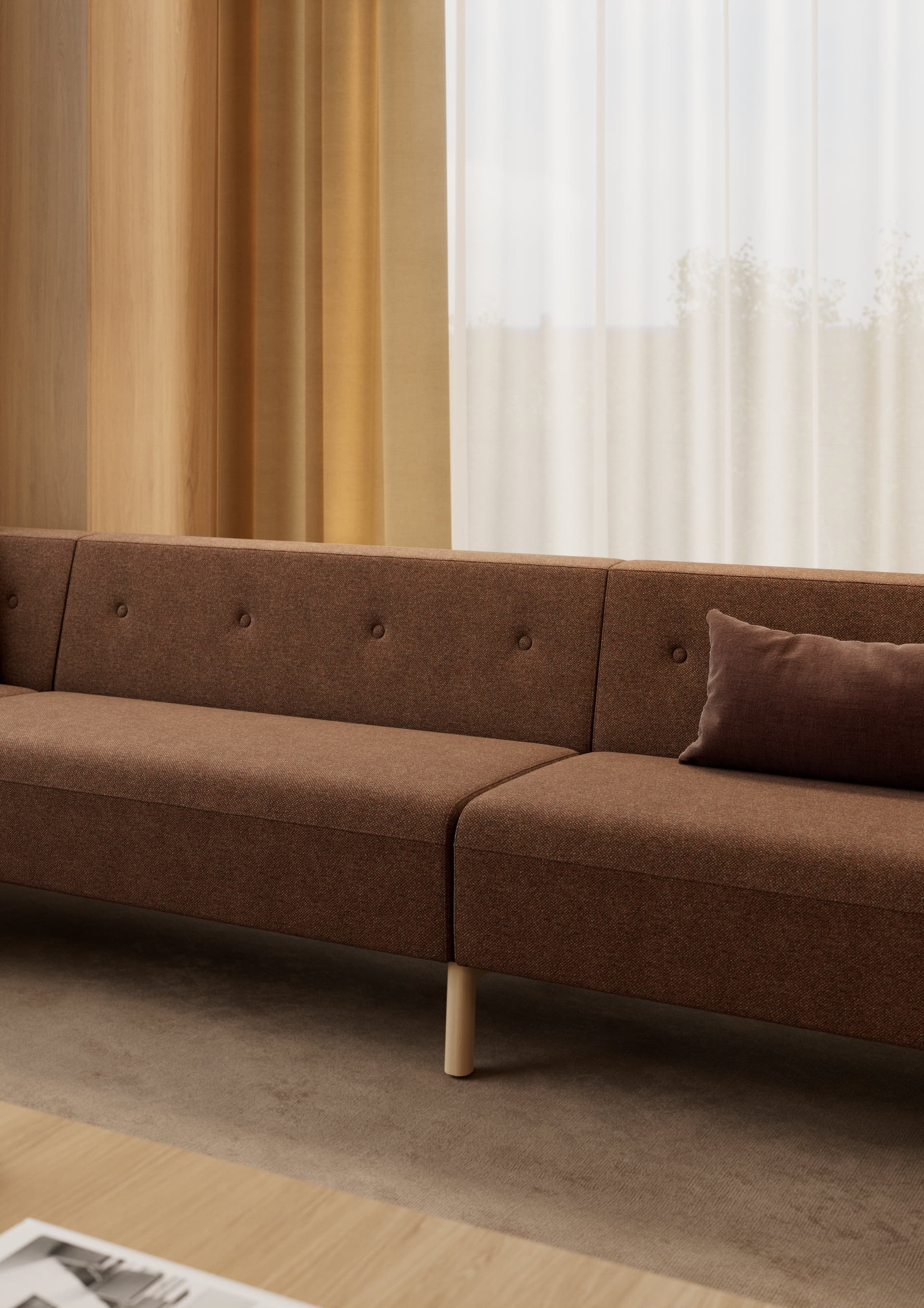 Let the sofa flow like waves through the lobby, create a focal point with a circle of sofa modules in the waiting area, or section off a quiet space in the middle of a lively open-plan office.