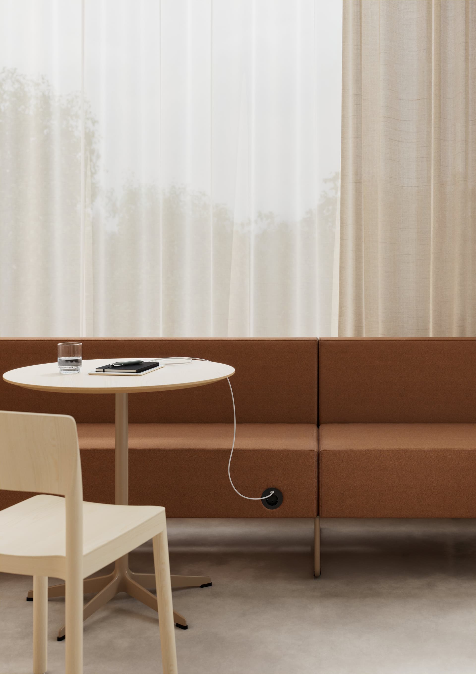 Flexibility is the key word for Café, which is available as both standalone units and round or straight connectable modules. The modules can also be linked with Gap Meeting. You can choose modules with or without armrests and complement them with tables that are mounted between the seats. Gap Café features a slightly firmer seat, making it ideal for tables with a height of 60–72 cm.