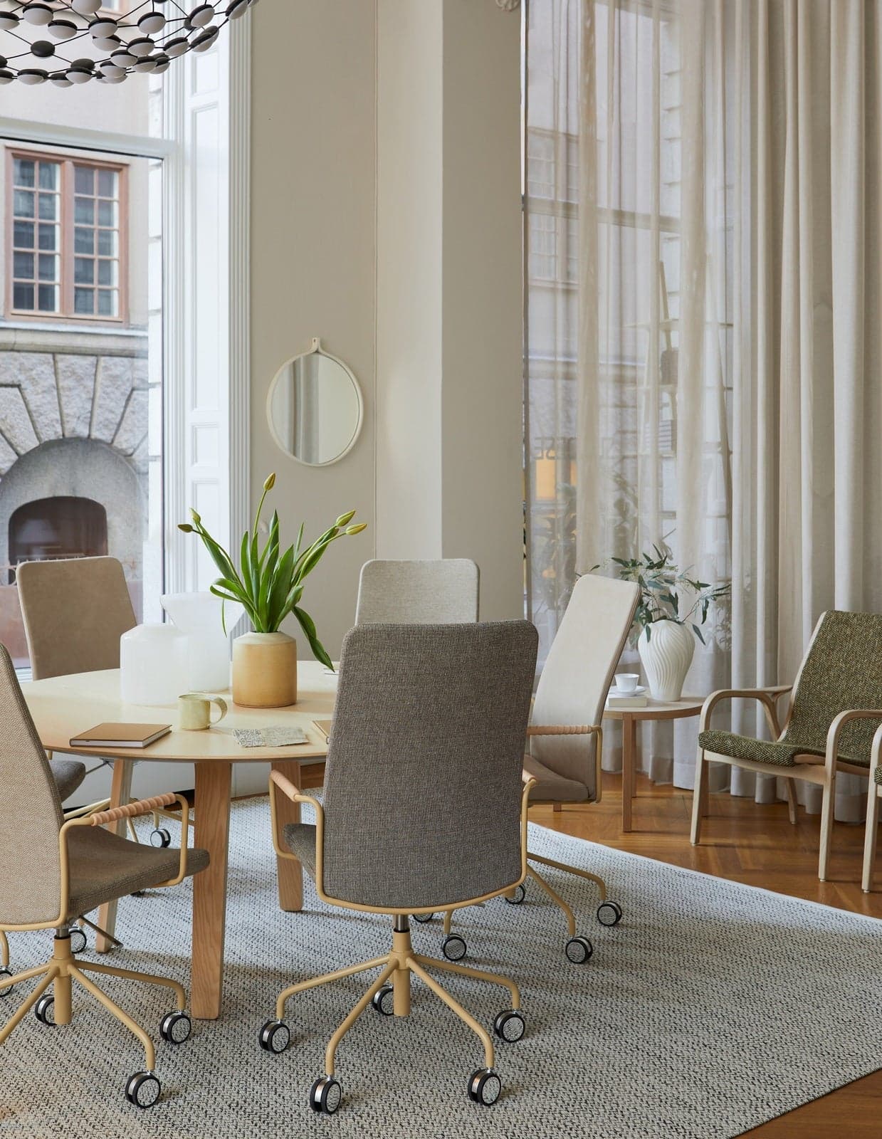 The Stella High Back armchair, designed by Broberg & Ridderstråle, is the latest addition to the Stella chair family. With its soft and sweeping lines together with the narrow back, Stella gets a low-key and sophisticated expression that makes the chair fit just as well in the home office as well as in conference rooms as well as smaller meeting rooms or a lounge.