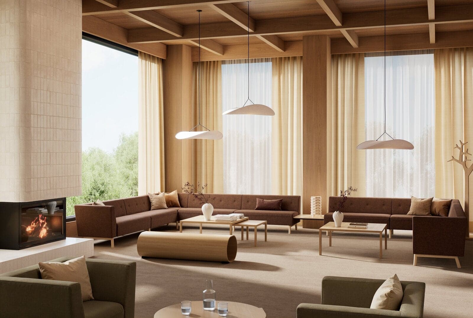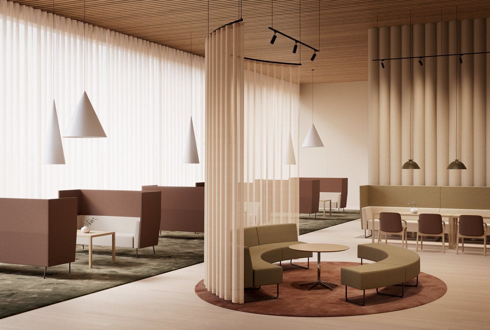 Låt soffan svepa fram som vågor i lobbyn, skapa ett blickfång med en cirkel av soffmoduler i väntrummet eller skärma av och skapa en lugn plats mitt i ett livligt kontorslandskap.