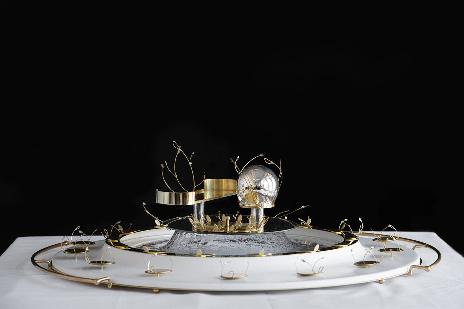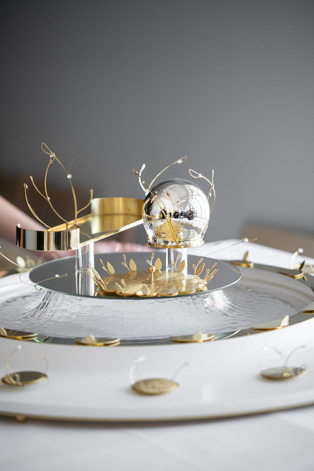 Fatet är designat av Sara Gibrand och producerat i tätt samarbete Jimmi Eriksson och Swedese. Inspirationen är hämtad från Jimmis favoritepok, art deco, som blev ledordet i designprocessen. Utmaningen var att göra något som stack ut och som inte liknande något fat från tidigare tävlingar. Första volymprototypen var gjord i skum, där den yttre corianringen i vitt adderades, för att i efterhand fylla på med handblåst glas, handsmidd mässing, laserskuren mässingsplåt, speglar och små kristaller.