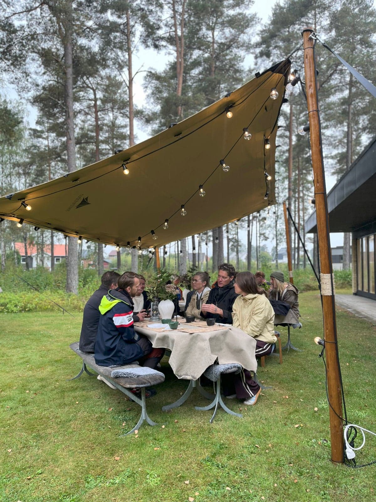 Formgivarna fick spendera en dag hos oss i Småland för att äntligen få se pallen de ska arbeta med, lära sig hur de ska ta hand om sina Moraknivar och äta mat lagad över öppen eld, serverad i vår tallskog.