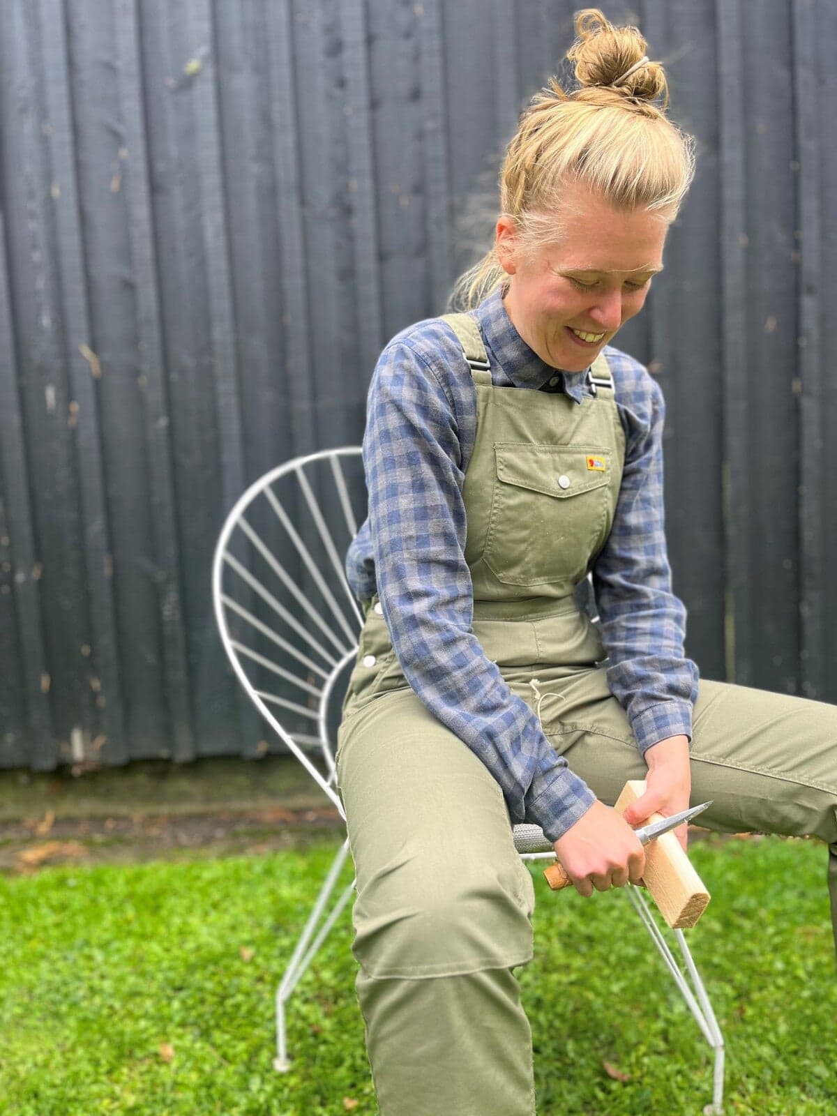 - Det här känns jättespännande! Materialet kändes inte alltför hårt och det är bra. Men det blir intressant att tälja i årsringarna som finns i lövträ. De kan skilja sig mycket åt mellan de ljusa och mörka ringarna. Jag tänker mig naturkoppling och mönster. Jag kommer gå loss med kniven, säger Mollys Sjöstam som är en erfaren slöjdare.