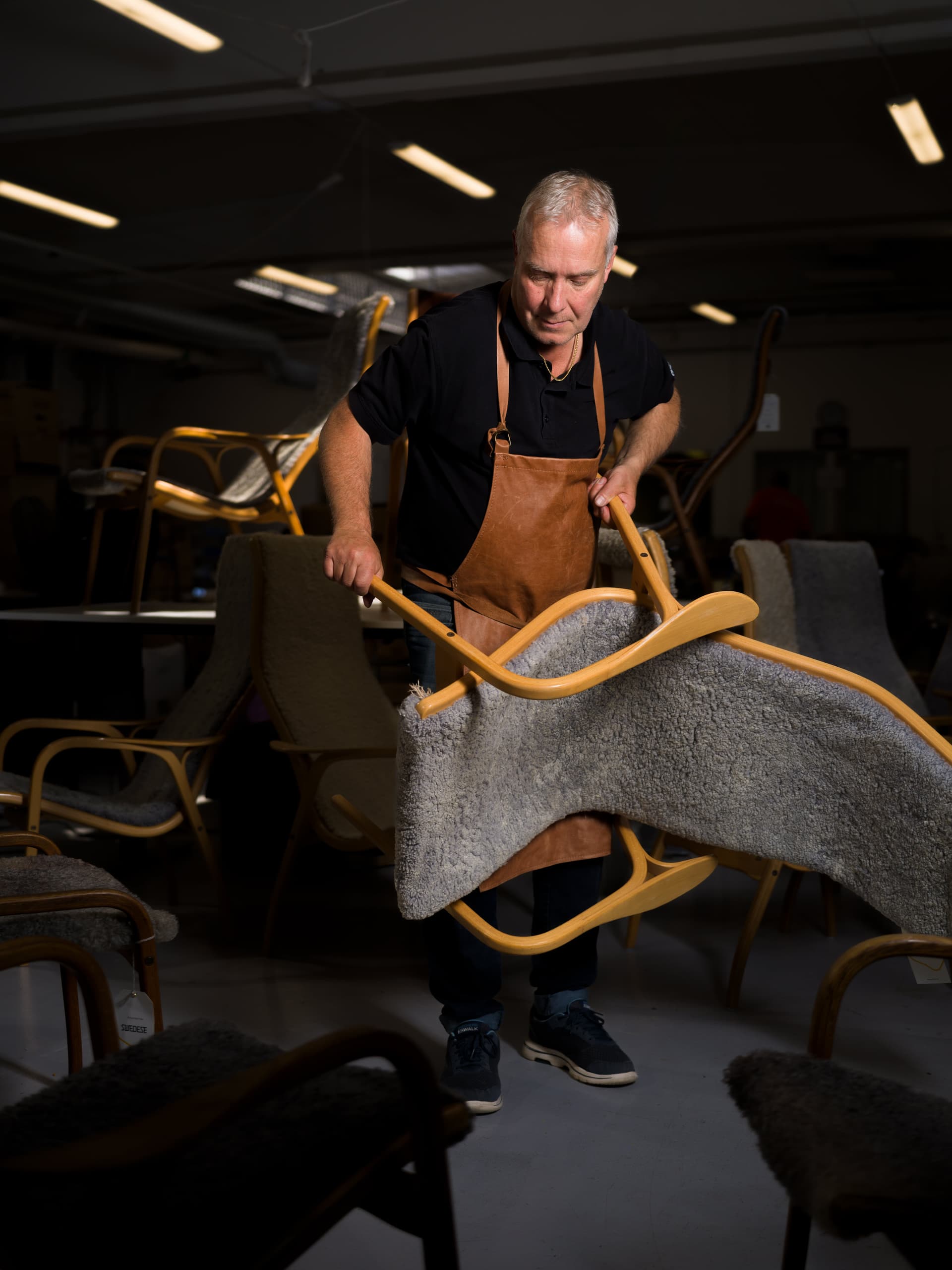 Förvandlingen av din fåtölj tar sin början i vår fabrik i Småland där Lamino har tillverkats sedan 1956. Swedese följer en noggrann process i hanterandet av din möbel. När din fåtölj anländer till oss sker en varsam nedmontering och det görs en tydlig märkning av varje del för att tryggt hålla varje fåtölj kopplad till rätt ägare.