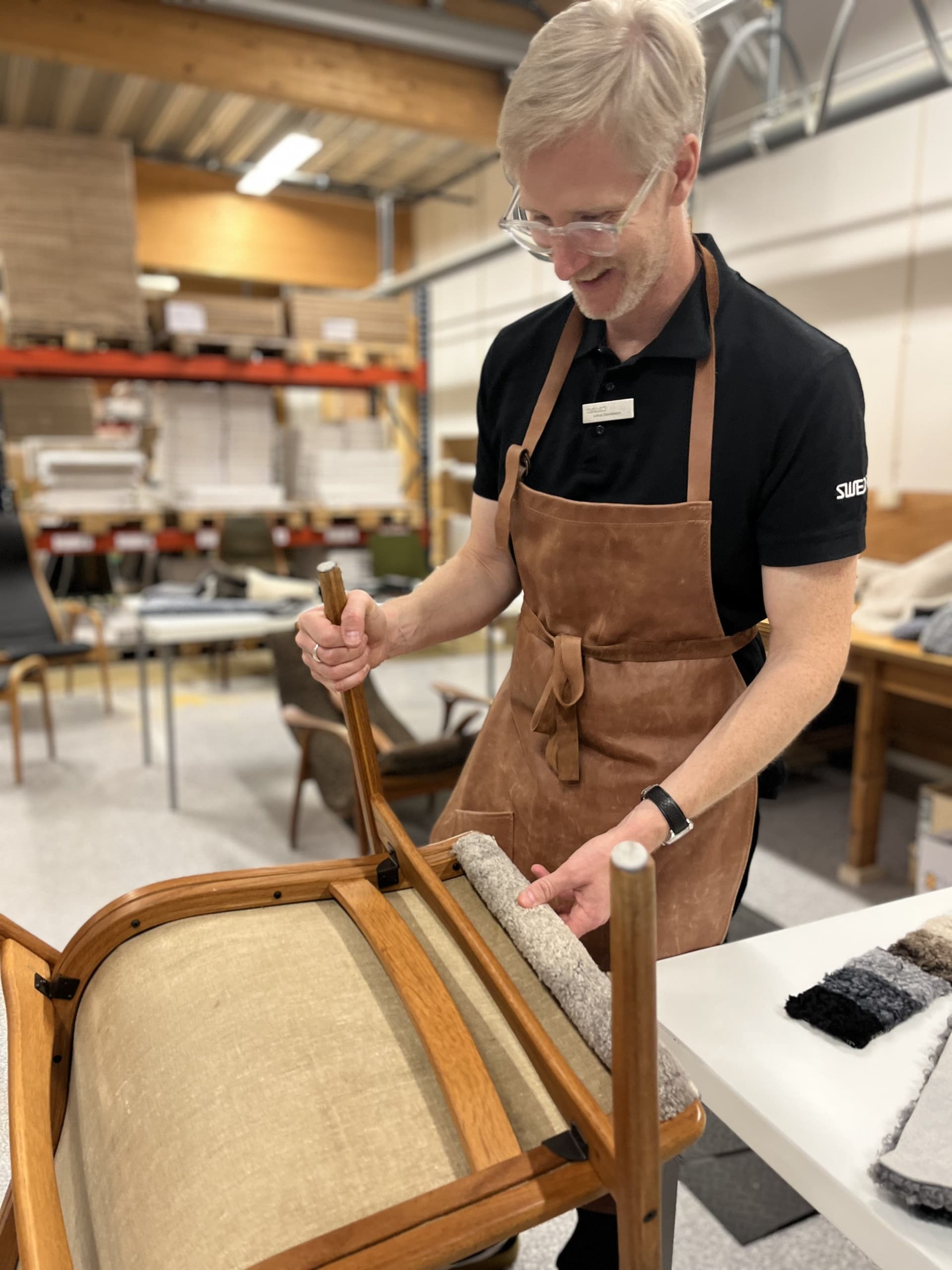 Vi renoverar, lagar och klär om i vår fabrik i småländska Vaggeryd. Här finns skickliga tapetserare, möbelsnickare och ytbehandlare. Här finns originaldelar, slitstarka material och här finns erfarenhet – det syns i detaljerna.